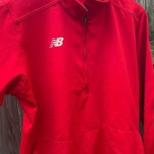 This warm 1/4 zip by New Balance is an excellent addition to any closet. It doesn’t cling and it lays nicely when layering. No flaws or signs of wear. EUC