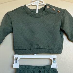 An adorable matching sweatshirt and pants to keep your little one warm.