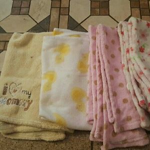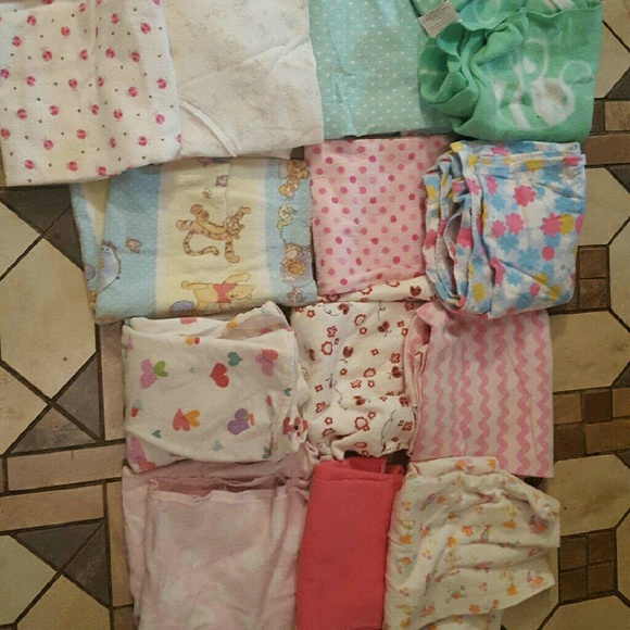 NB 7 shirts, 6 pants, 1 shorts, 8 pj's, 31 onesy, 13 receiving blankets, 5 towels, 4 small warm blankets, 6 bibs, 5 hats, 7 mittens, 2 shoes.