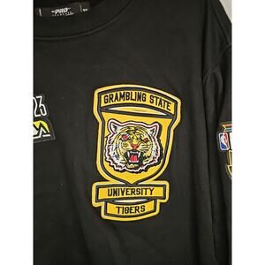 The NBA 2023 All-Star Game x HBCU Grambling Tigers Pro Standard Men's 3XL Sweatshirt is a classic black sweatshirt featuring a solid pattern with embroidered accents. Made of cotton material, it has long sleeves and a crew neckline, perfect for all seasons like winter, fall, and spring. With a theme of stars, this pullover sweatshirt is designed for basketball performance and features a regular fit for men. The collaboration between NBA, HBCU, and Pro Standard ensures a high-quality and stylish addition to any athletic wardrobe.