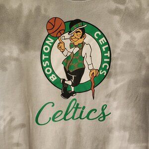 This listing is for an NBA Boston Celtics Tie Dyed Short Sleeve T-Shirt with the Team’s Iconic Logo and Graphics; color is Gray; size is Large.