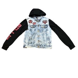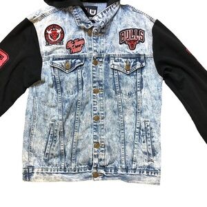 NBA Chicago Bulls Button Front Hooded Denim Jacket w/ Cotton Sleeves, Medium