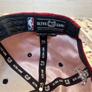 Bold red cap with black brim. Features Chicago Bulls logo. Perfect for fans.