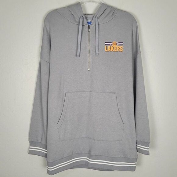 NBA Los Angeles Lakers Size L NEW Sweatshirt Hoodie 1/4 Zip Kangaroo Pocket Gray