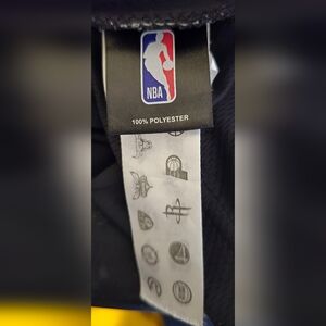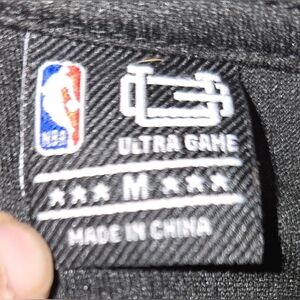 The product is an officially licensed NBA Miami Heat jersey by the brand Ultra GAME. The jersey is in size Medium for men, featuring the iconic black and red colors of the Miami Heat team. 100% polyester.