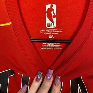 Showcase your team spirit with this vibrant red NBA crewneck sweater, featuring bold 'MIAMI HEAT' text and the iconic team logo. The pullover design offers both comfort and style, making it an essential addition for any basketball fan. Perfect for game days or casual outings, this sweater lets you proudly display your Miami Heat pride.