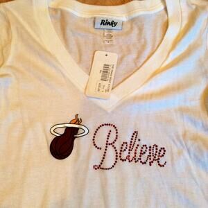 Pinky NBA Miami Heat women's size small "Believe" bling graphic t-shirt. New with tags from a smoke free home.