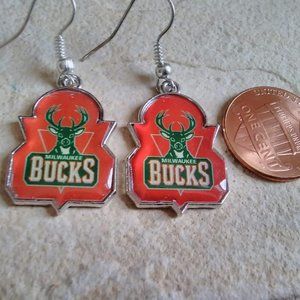 Show your support for the Milwaukee Bucks with these cool Earrings. New. Red background silver tone fish hook for pierced ears.
