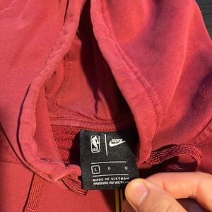 Show your team spirit with this Nike Cleveland Cavaliers hoodie, featuring the official NBA logo and Nike Swoosh on the front. This maroon/red hoodie is a comfortable fit for a men’s small or kid’s large size.