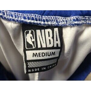 Show your love for the NBA with these officially licensed men's logo shorts. The white shorts feature the NBA logo in blue and are perfect for any basketball fan. The size medium, like new, 100% polyester . See all photos inside and out!