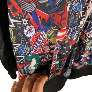 NBA Teams Logo Full Zip Hoodie Size Small Double Sided Black All Over Print