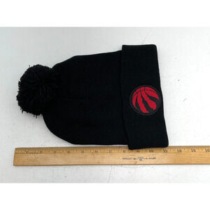 Black beanie with the Toronto Raptors logo, stylish and comfortable