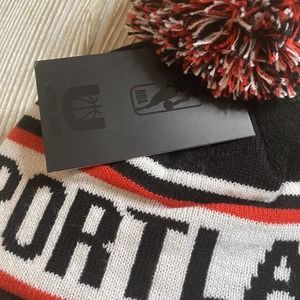 NBA Ultra Game Portland Trail Blazers Cuffed Pom Winter Hat Striped Red Black NWT.