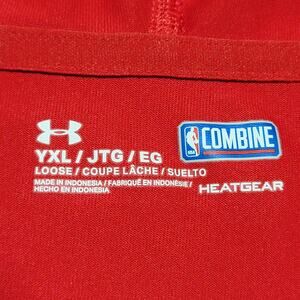 Show your team pride with this awesome NBA Under Armour quarter zip hooded tee! Featuring the Houston Rockets logo, this youth extra large (YXL) tee is perfect for any young fan. The loose fit ensures comfort while cheering on your favorite team. This is the perfect item for any young Rockets fan. Can also fit an Adult Small-Medium.
