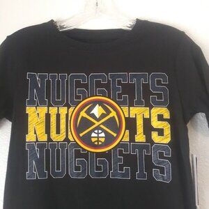 NBA boy's size M black, yellow and white short sleeve nuggets T-shirt, pull over, Nuggets wording logo on front