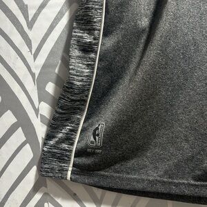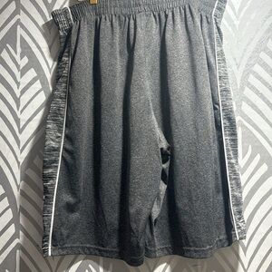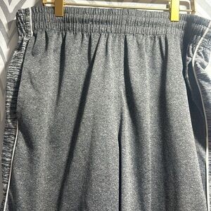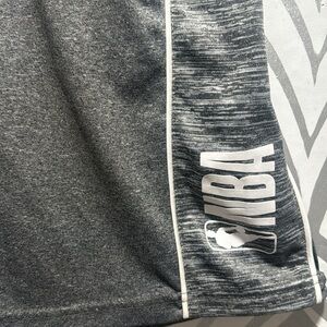 NBA men’s basketball shorts. Gray. Drawstring. Piping on the sides. NBA emblem on the side of shorts. Size large. Measures 23 inches from top of waistband to the hem. Inseam measures 10.5 inches. Elastic waistband measures 34 inches.