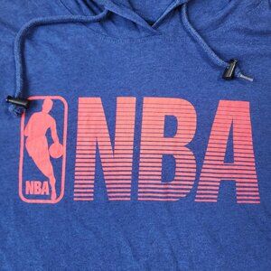 NBA navy blue with red screen print lightweight long sleeve hoodie with drawstrings.