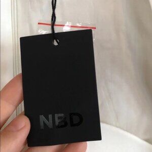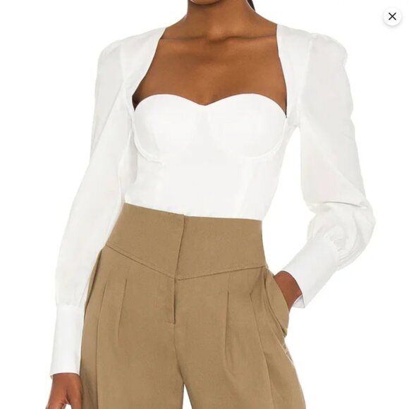 NBD white top with molded cups, sweetheart neckline, and cuffed sleeves. So flattering! Originally $110.