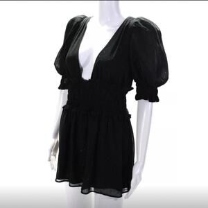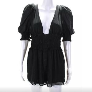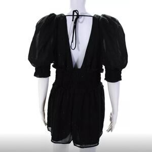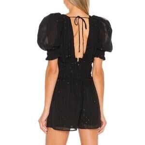 NBD Anya Black Chiffon Open Back Puff Sleeve Romper S