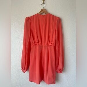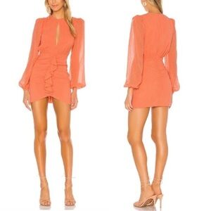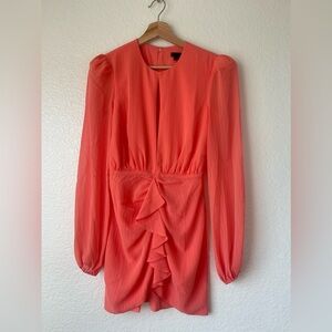 NBD Arijana Coral Orange Front Keyhole Long Sleeve Mini Dress