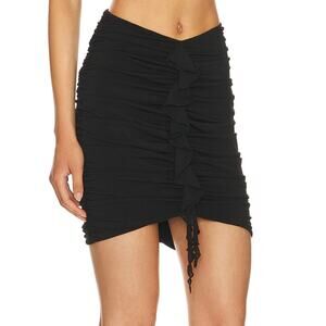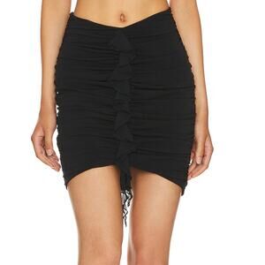 NBD Black Ruched Mini Skirt XS Club Low Rise Bodycon Revolve Designer $158 NEW