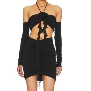 NBD Black Ruched Mini Skirt Black XS Club Low Rise Bodycon Revolve Designer $158 NEW