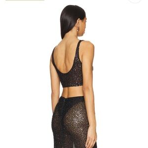 Stunning black sequin maxi skirt by NBD. Features a sheer design with shimmering sequins. Perfect for evening wear.