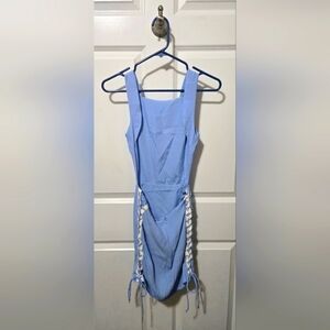 Sky blue NBD dress with white lace up and tie sides