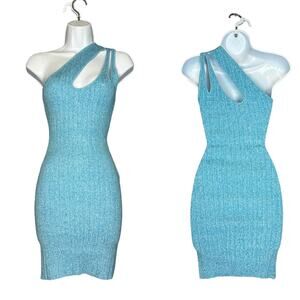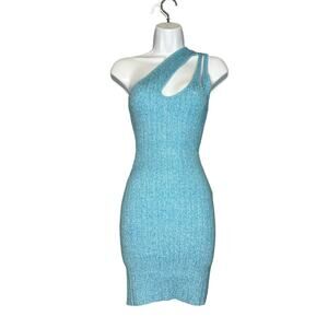 NBD Blue One Shoulder Knit Mini Dress SMALL Bodycon Cut Out Knit Revolve $188 NEW