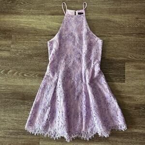 nbd lilac lace mini dress 💜 sz M fit & flare formal REVOLVE halter dress