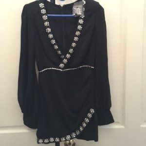 NBD Cocktail Party NYE Embellished Mini Dress Black Small NWT $268 this
