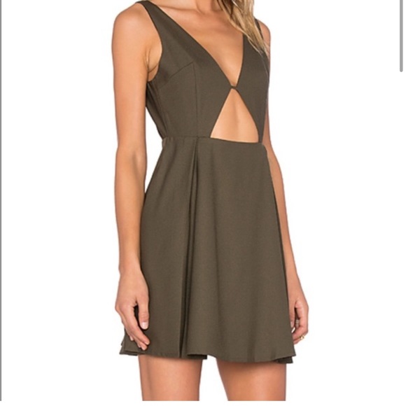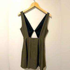 Deep sage army green with flowy mini dress style. Low back. Ultra chic!