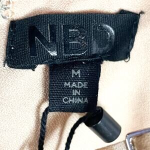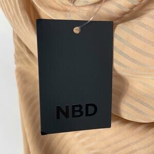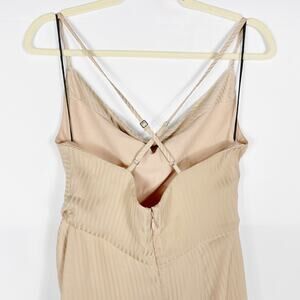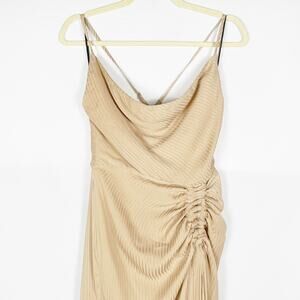 NEW NBD Davis Gown in Nude Maxi Dress Ruched Side Slit Subtle Stripe Sz M