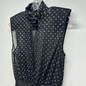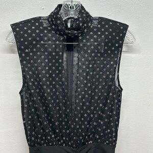 Keywords: Sleeveless, high neck, polka dot glitter detail, black, short