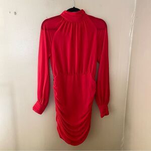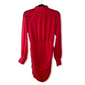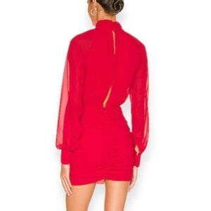 NBD Genesis Mini Dress in Red chiffon ruched Revolve NWT S