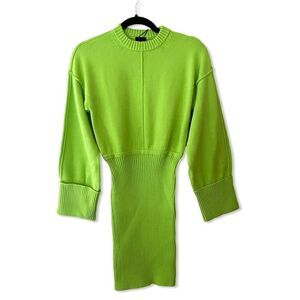 NBD Imani sweater mini dress electric green knit turtleneck neon Revolve small