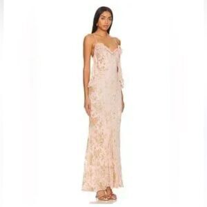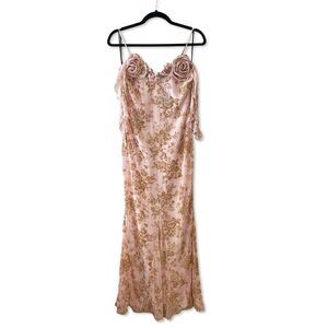 NBD Jamela Gown in Blush Pink Gold Floral Maxi Dress rosettes Revolve NWT XS
