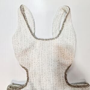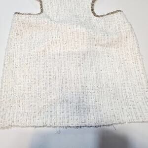Tweed fabric with metallic silver threading and gold sequins throughout