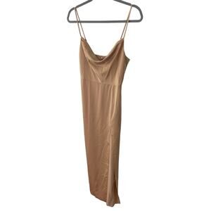 NBD Lila Gown Maxi Satin Cowl Neck Adjustable Strap Side Slit Champagne Size XS