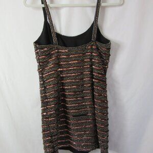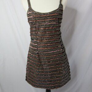 NBD Mini Cocktail Dress Black Copper Sequins Beading Stripes Tank Size Small