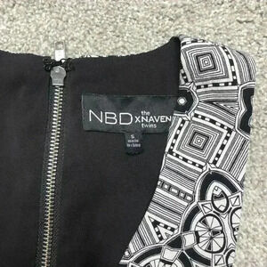 NBD x The Naven Twins mini dress in black and white color with asymmetric hem.