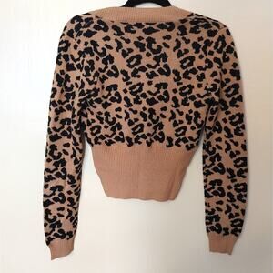 NBD NEW Small NWT Cheetah Print Cropped Low Cut Sweater Brown Black Animal Print