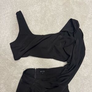 Looks like a two piece with draping to connect the dress together! Super flattering and only worn once!
