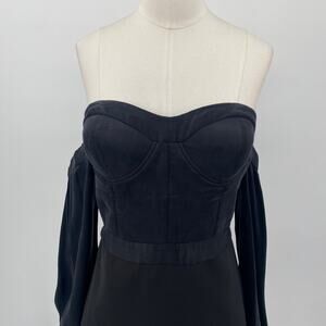 NBD Revolve Bustier Mini Dress Off Shoulder Long Sleeve Black Womens Medium
