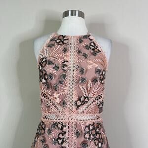 NBD | Revolve Felicity Pink Embroidered Floral Mermaid Halter Cocktail Dress M