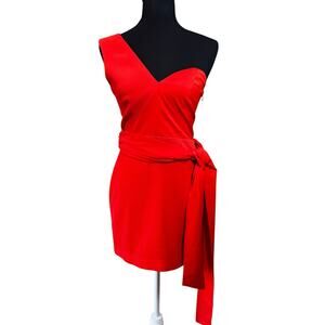 NBD Revolve Jasper Mini Dress Size SMALL One Shoulder Red Orange Sash Bow