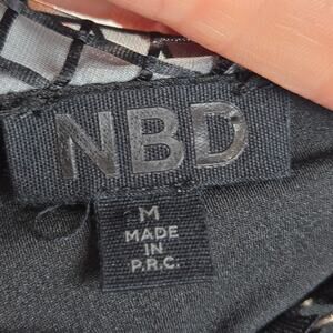 NBD from Revolve mini dress in gray windowpane raised texture print. Tiered style with raw edge lace. Whimsygoth style. Size medium. Excellent condition