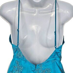 NBD Revolve Plunge V-Neck Lace Slip Cocktail Mini Dress Low Back Blue Small