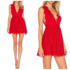 NBD Revolve Red Lace V Neck Mini Dress, size XS, New with tag