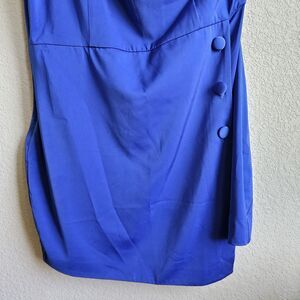 The NBD Revolve Women's Tere Mini Dress in Bright Cobalt XL is a stylish and vibrant dress perfect for parties or cocktail events. The dress features a sleeveless design with a one-shoulder neckline, making it a chic and elegant choice. Made from a polyester blend satin fabric, this short dress is designed to hug your curves and make a statement. The bold blue color adds a pop of color to your wardrobe, making it a versatile piece for all seasons. Pre-owned condition